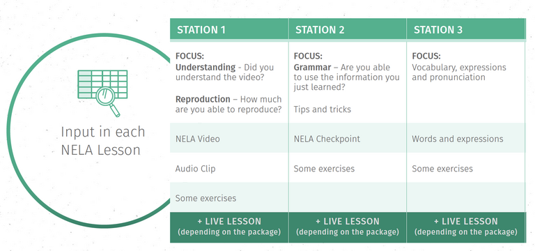into 3 learning stations: